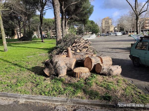 Aprilia - Pini pericolosi al parco di via dei Mille, tagliati 27 alberi