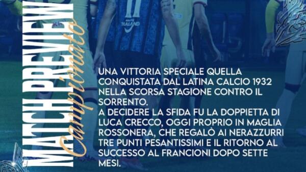 Calcio di serie C, si torna al “Francioni” di Latina per la gara contro Sorrento.