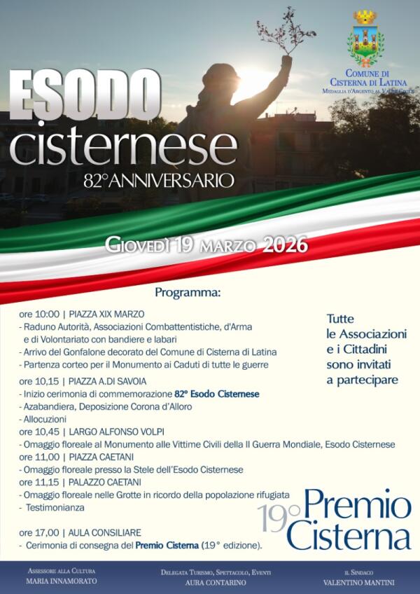 “Esodo Cisternese”, giovedì la celebrazione con la consegna del “Premio Cisterna”.
