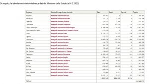 Di seguito, la tabella con i dati della banca dati del Ministero della Salute (al 4.2.2022)