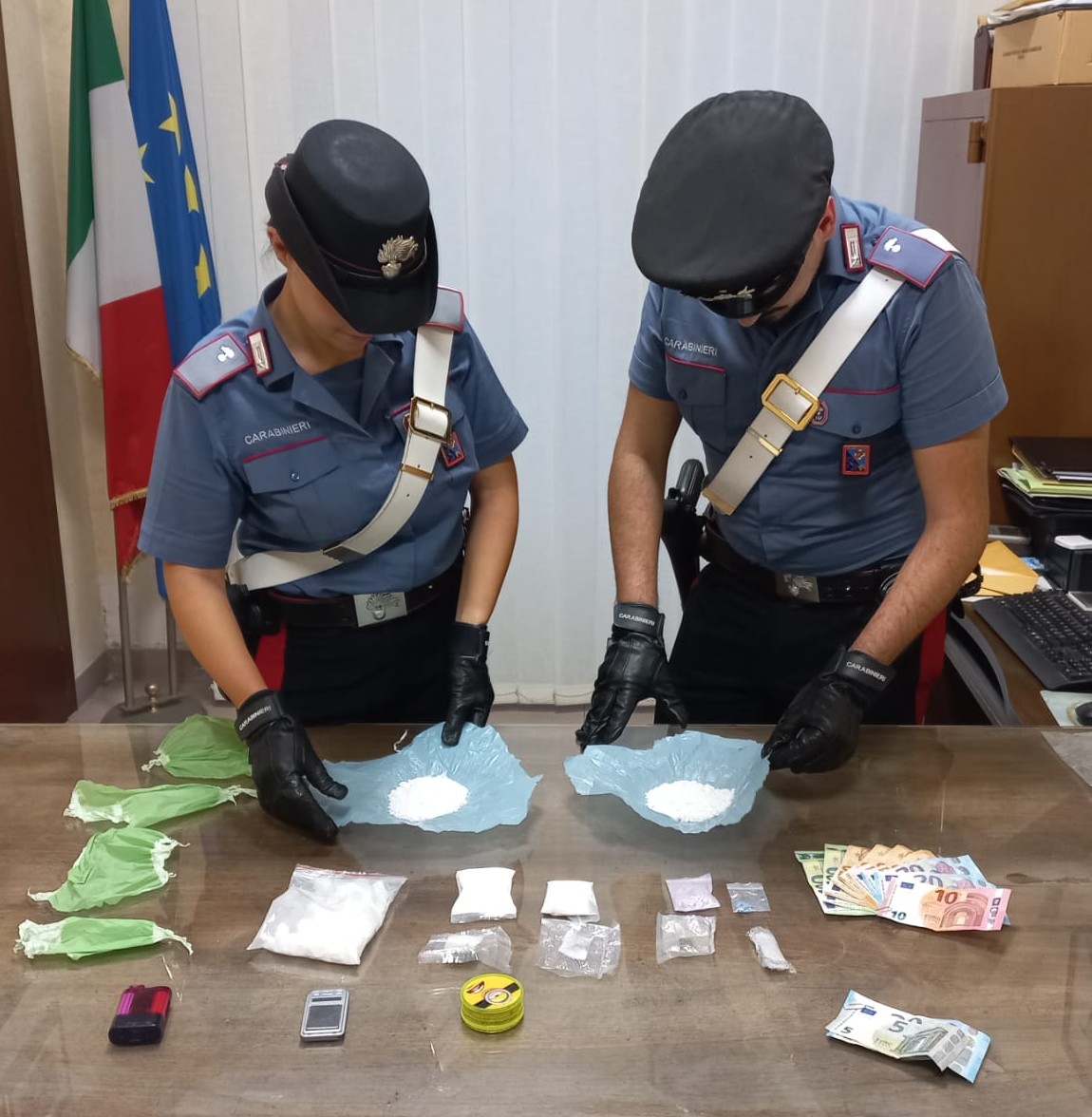 I Carabinieri della Stazione di Roma San Paolo hanno invece arrestato un 20enne e una 18enne, entrambi studenti romani già noti alle forze dell’ordine, fermati a bordo di un’autovettura ferma in via Ostiense, nei pressi del parco Schuster, e trovati in possesso di 320 g di ketamina, 6 g di ecstacy, alcune dosi di hashish e marijuana, un bilancino di precisione, materiale per il taglio e confezionamento della droga e 500 euro in contanti, ritenuti provento di attività illecita.