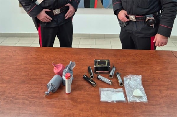 Deteneva illegalmente 3 bombe carta di fabbricazione artigianale e 6 artifizi pirotecnici. E’ stato necessario l’intervento degli artificieri.