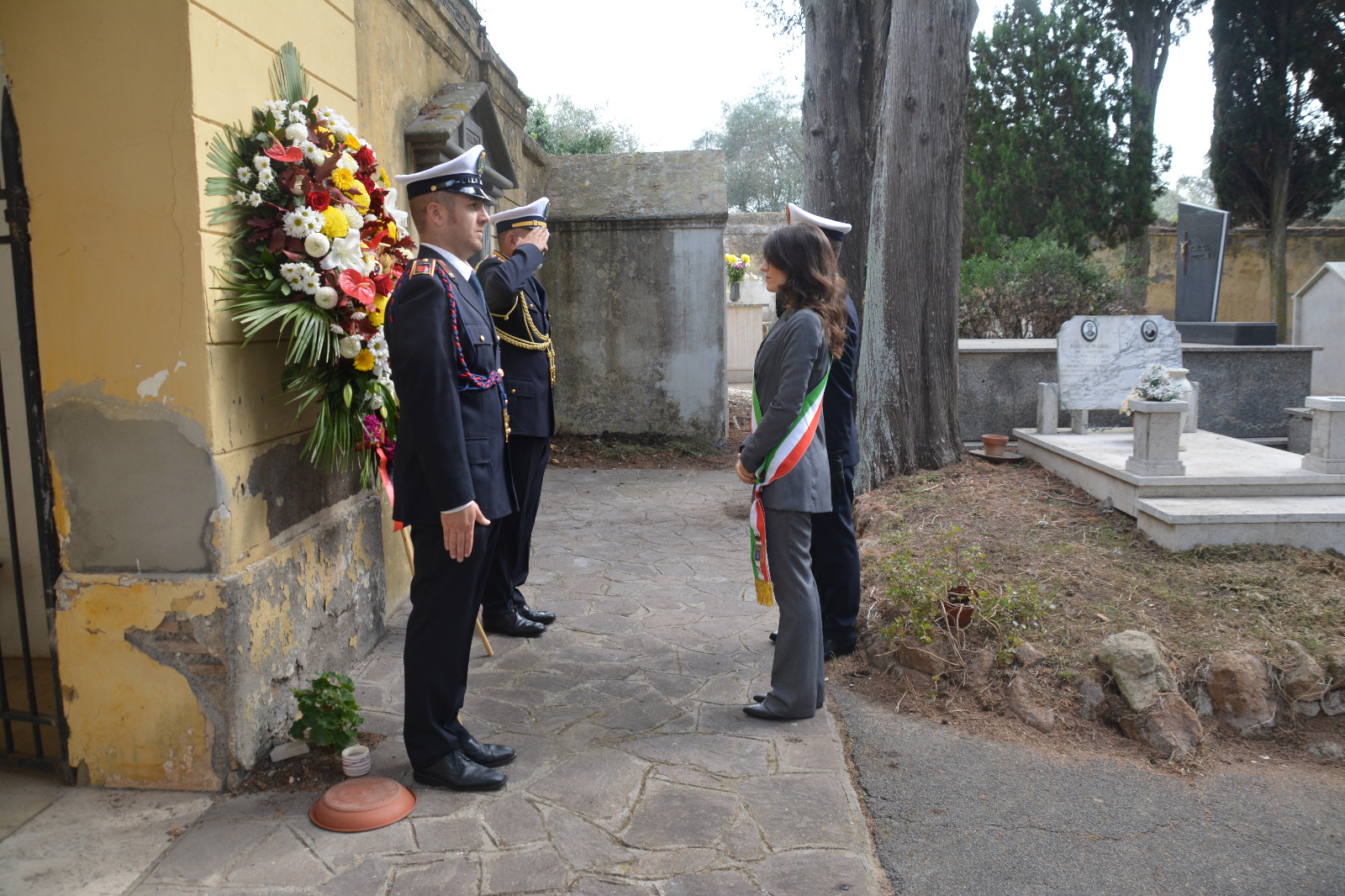 La subCommissaria Laura Mattiucci e il Comandante della Polizia Locale Angelo Pizzoli hanno rivolto il tradizionale gesto di cordoglio e vicinanza alla cittadinanza deponendo una corona di fiori al Cimitero urbano, al Cimitero militare germanico e al Cimitero di Pratica di mare.