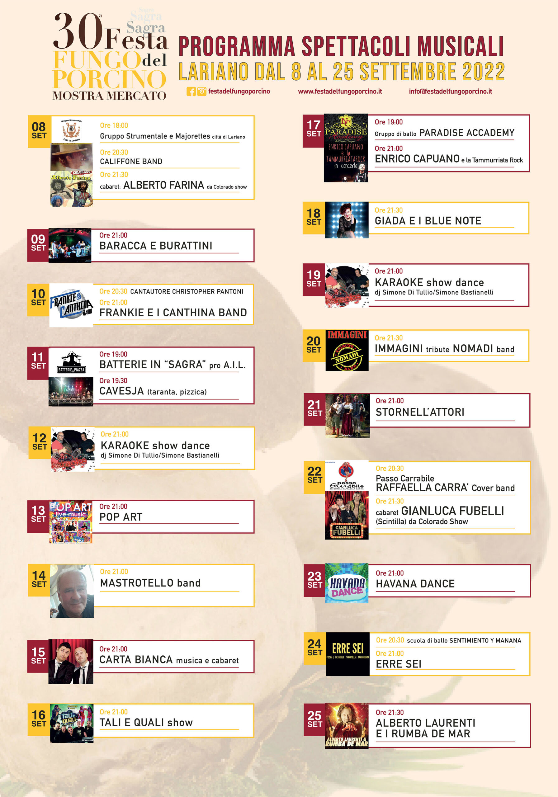30esima edizione della Festa del Fungo Porcino di Lariano. Gastronomia, musica, spettacoli sino al prossimo 25 Settembre. -
