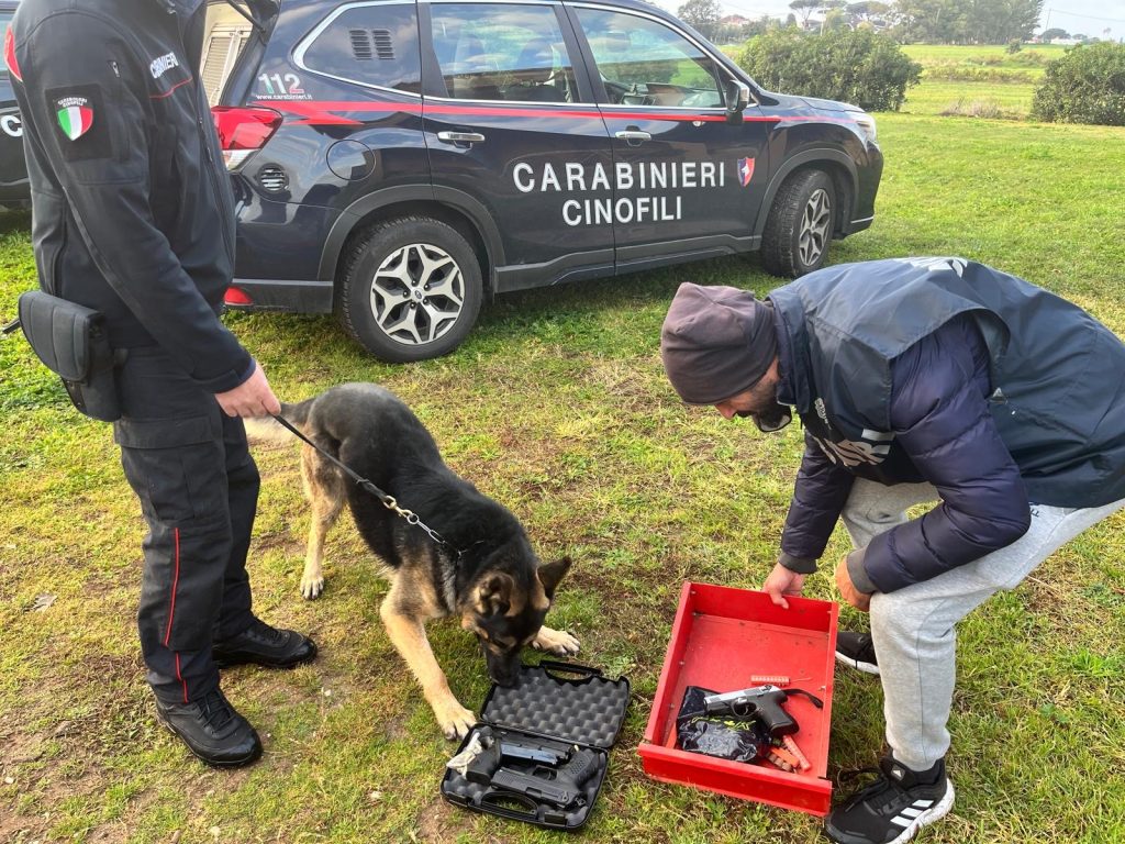 I Carabinieri della Compagnia di Anzio, con il supporto del Nucleo cinofili di Roma e dei colleghi delle Compagnie del Gruppo Frascati, al termine delle operazioni hanno complessivamente rinvenuto e sequestrato 4,8 kg di hashish, divisi in confezioni da 100 g riportanti le effigi di prodotti commerciali (cioccolata, bevande ecc.), 50 g di cocaina, 2.100 euro in contanti, vari bilancini di precisione e materiale per il confezionamento in dosi, appunti manoscritti comprovanti l’attività di spaccio, 3 pistole scacciacani modificate per l’utilizzo di munizioni vere, oltre 150 munizioni calibro 9 e un microtelefono, finalizzato ad essere consegnato a sodali del gruppo già detenuti.