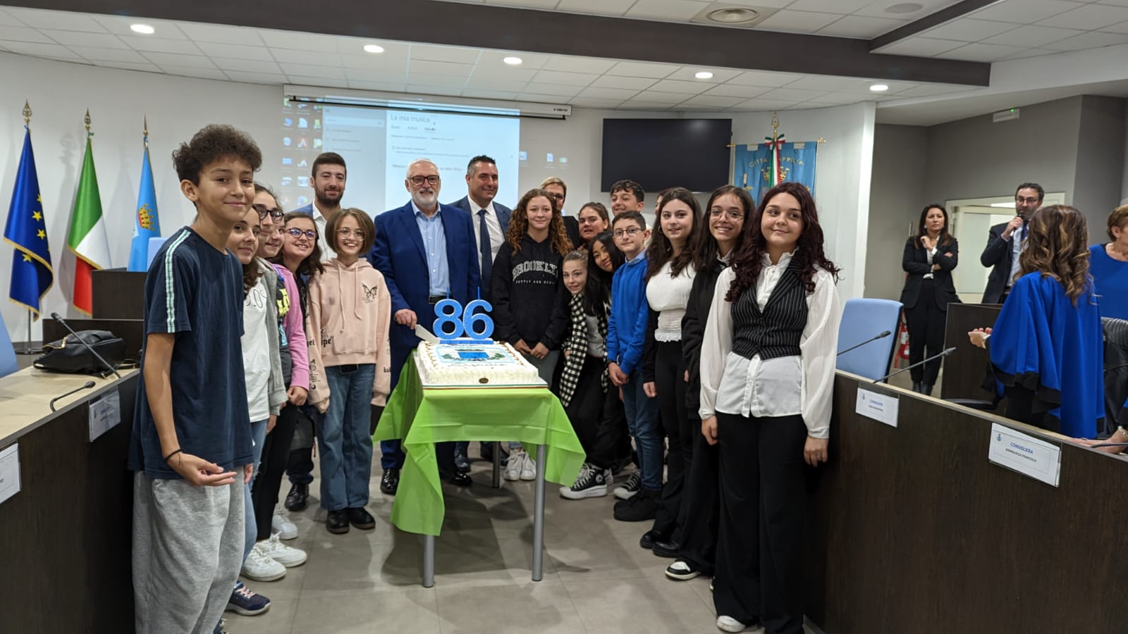 “Anticipare i festeggiamenti di alcuni giorni – ha detto il sindaco Lanfranco Principi – ci ha dato l’opportunità di condividere con voi questo momento così importante. Credo che ognuno di noi debba sentirsi parte della città e contribuire a renderla migliore. Vorremmo che ognuno di voi ragazzi prendesse per mano Aprilia e la accompagnasse nel futuro”.
