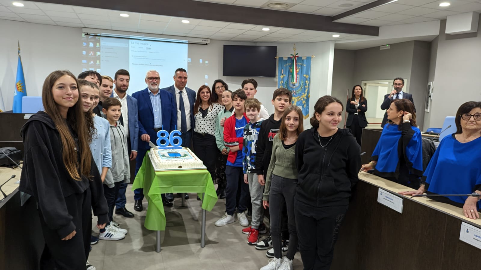 Celebrazioni per gli 86 anni della città di Aprilia: questa mattina in Aula Consiliare si è tenuto l’evento “Aprilia che vorrei…” pensato per permettere ai ragazzi delle scuole medie della città di conoscere meglio Aprilia e raccontarla attraverso i loro occhi, tramite gli elaborati che hanno potuto presentare al Sindaco e ai presenti. Durane la cerimonia si è esibito anche il coro Liberi Cantores diretto dal maestro Rita Nuti.