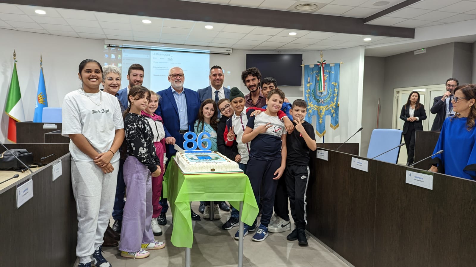 Celebrazioni per gli 86 anni della città di Aprilia: questa mattina in Aula Consiliare si è tenuto l’evento “Aprilia che vorrei…” pensato per permettere ai ragazzi delle scuole medie della città di conoscere meglio Aprilia e raccontarla attraverso i loro occhi, tramite gli elaborati che hanno potuto presentare al Sindaco e ai presenti. Durane la cerimonia si è esibito anche il coro Liberi Cantores diretto dal maestro Rita Nuti.