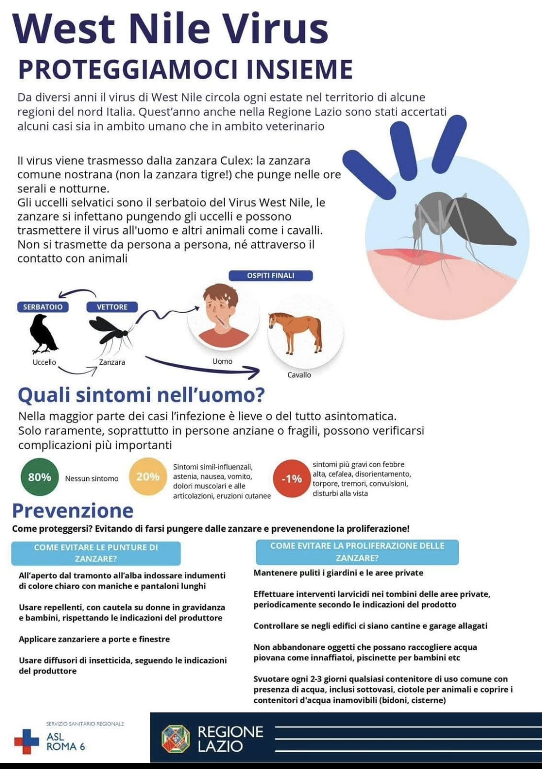 A Campoleone questo sabato sera intervento straordinario di disinfestazione a cura del Comune di Lanuvio. A partire dalle 22.00 sarà effettuato un intervento larvicida ed adulticida, a cura di una ditta specializzata. L’operazione è mirata alla prevenzione delle punture di zanzare potenzialmente portatrici del virus West Nile.