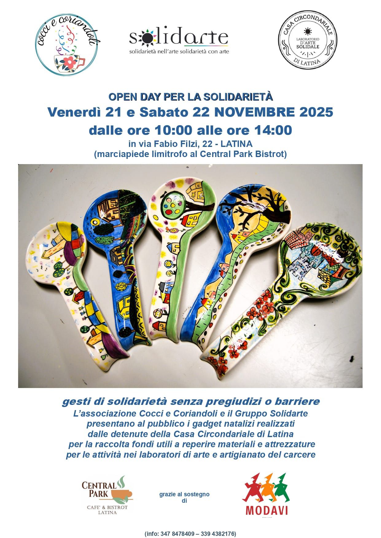 A Latina questo weekend la mostra dei gadget natalizi realizzati delle detenute del carcere, che partecipato al laboratorio di arte e artigianato curato da Giuliana Bocconcello. L’appuntamento è per domani e sabato 22 Novembre presso il Central Park Bistrot di via Fabio Filzi, 22. Ad Arganizzare la mostra, l’associazione Cocci e Coriandoli ed il Gruppo Solidarte. Il ricavato andrà a favore delle attività che si svolgono nel laboratorio.
