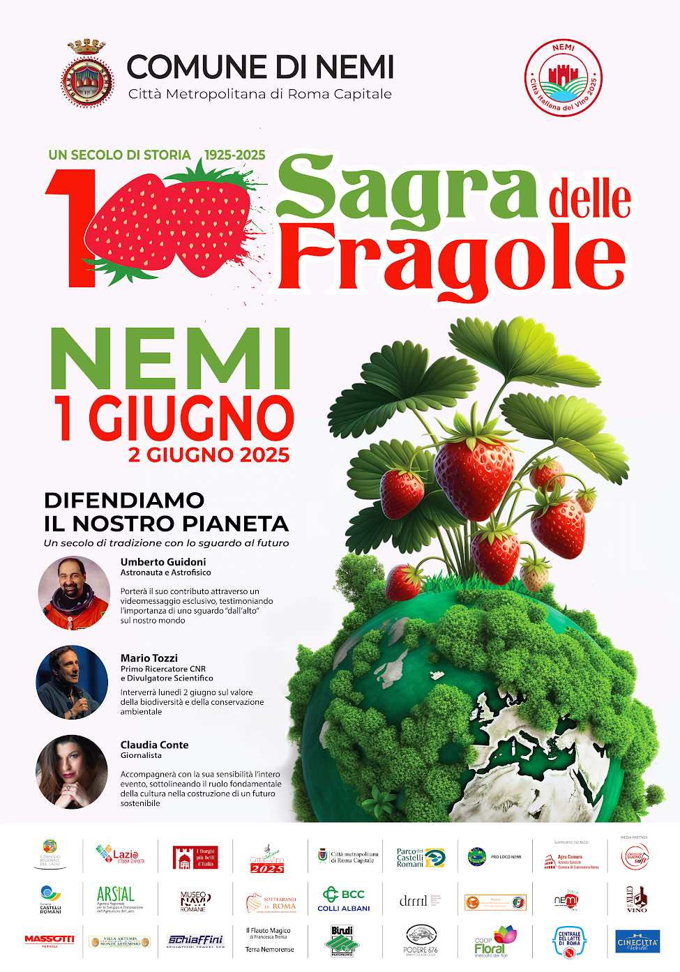 “Celebrare 100 anni della Sagra delle Fragole significa raccontare la storia di un intero territorio, delle sue famiglie, delle sue donne e della sua agricoltura. Ma significa anche rilanciare l’identità di Nemi nel segno della sostenibilità, della cultura e della tutela ambientale. Questo evento non è solo una festa, ma un progetto di comunità e visione, per il presente e il futuro,” ha dichiarato il Sindaco di Nemi, Alberto Bertucci. Inoltre voglio ringraziare tutta l'amministrazione comunale per l'impegno profuso nella complessa organizzazione di questo evento unico nel suo genere. Un importante messaggio di ringraziamento voglio rivolgerlo al media partners Dimensione Suono Soft che da anni sostiene e si appassiona alla manifestazione. Il sostegno della famiglia Montefusco in questi anni è stato importante per rendere Nemi e la Sagra delle Fragole una delle più importanti e longeve manifestazioni di tutta Italia.