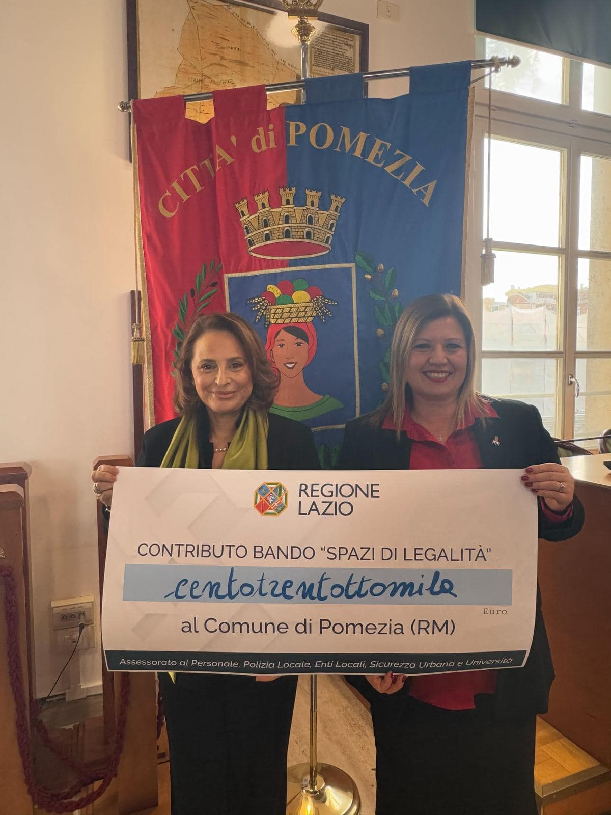 Luisa Regimenti, in settimana, si è recata a Pomezia, per incontrare la Sindaca Veronica Felici ed il presidente del Consiglio comunale, Francesco Lamanna, e presentare appunto la graduatoria del bando "Spazi di legalità".