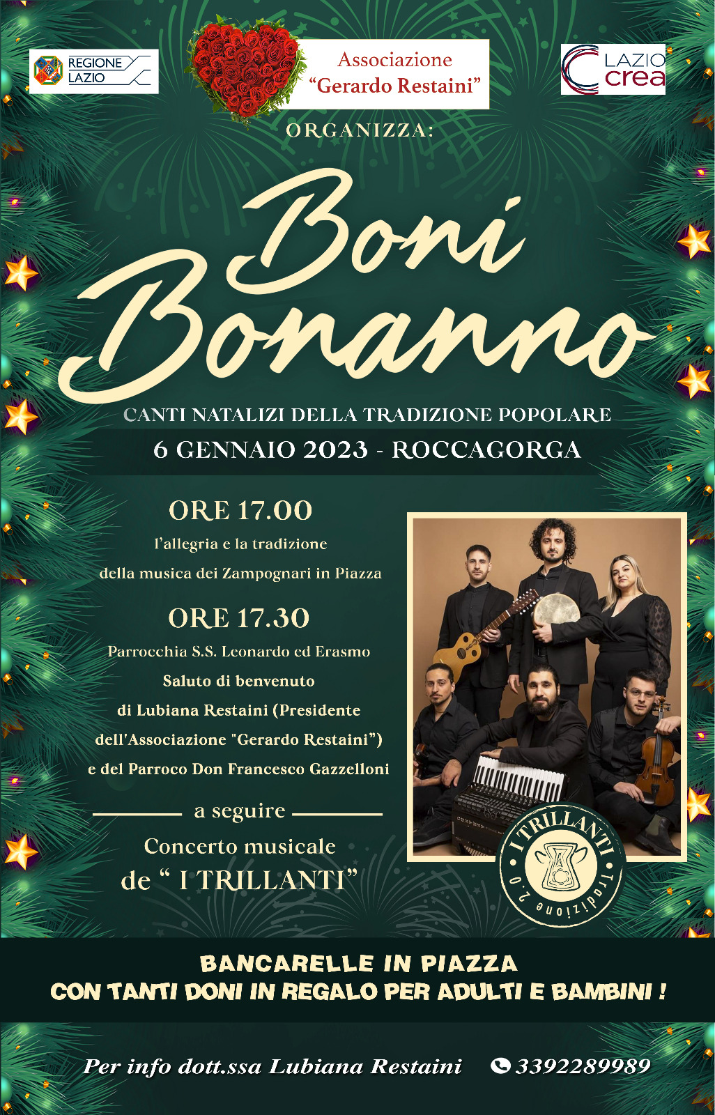 A Roccagorga un concerto di musica popolare per prevenire i disturbi dovuti alla demenza senile. Ad organizzarlo, per domani alle 17.30, l’Associazione “Gerardo Restaini”. L’appuntamento è presso la Parrocchia S.S. Leonardo ed Erasmo. Ad esibirsi il gruppo musicale de I Trillanti, che con lo spettacolo “Bonì Bonanno” ripercorrerà i canti natalizi della tradizione popolare.