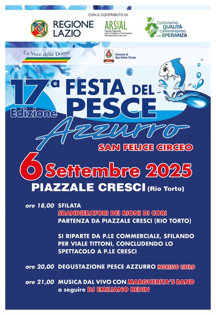“La Festa del Pesce Azzurro, realizzata grazie al lavoro del Comitato La Voce delle Donne, rappresenta un momento identitario per la nostra comunità – dichiara il Sindaco Monia Di Cosimo – un’occasione per riscoprire e far conoscere ai visitatori la ricchezza della nostra tradizione gastronomica e la qualità dei prodotti del territorio. Il sostegno di Arsial è un riconoscimento importante, che ci permette di valorizzare al meglio questa iniziativa e di rafforzarne la capacità di promozione culturale e turistica”.