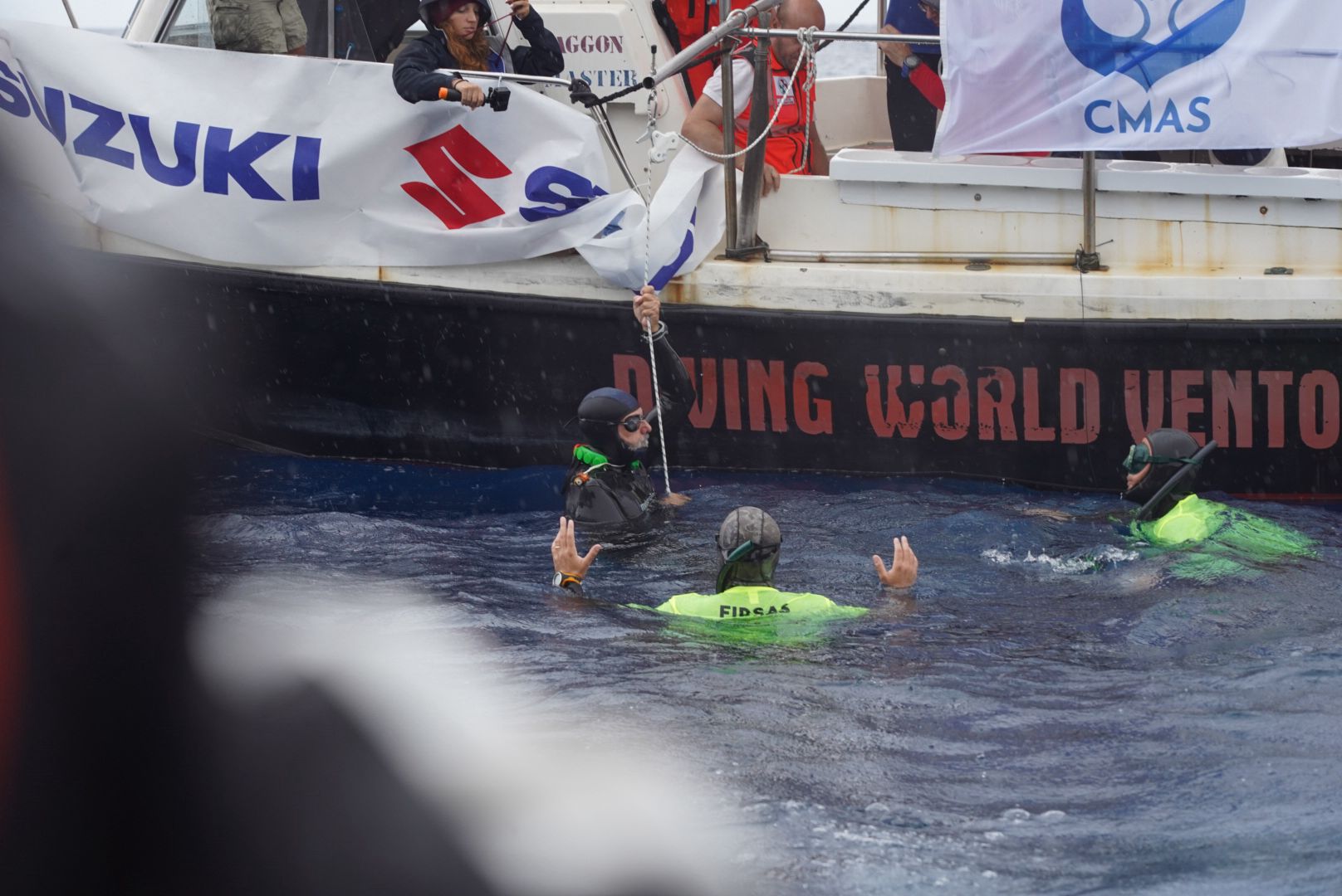 I tre campioni nel ‘Suzuki deep challenge’ non hanno deluso le attese, anzi sono andati oltre, se possibile, i loro stessi limiti. Nonostante pioggia, vento e mare piuttosto agitato, hanno centrato l’obiettivo andare oltre i record mondiali che avevano programmato di superare