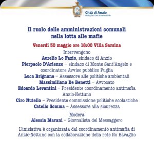 Ad Anzio l'incontro su "Il ruolo delle pubbliche amministrazioni nella lotta alle mafie”