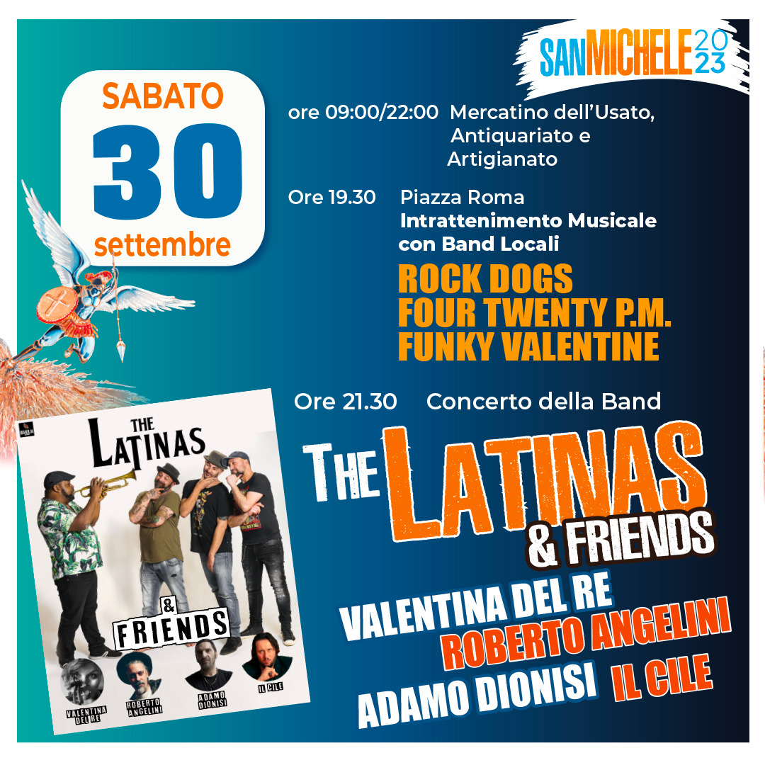 Ore 21:30 Serata musicale, esibizione “The Latinas & Friends”, ospiti Roberto Angelini, il Cile, Valentina Del Re e Adamo Dionisi