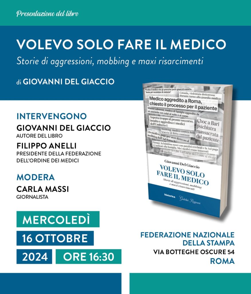 Le aggressioni ai medici e al personale sanitario stanno “facendo” molto notizia ma sono un fenomeno che si trascina da tempo. Di questo (e non solo), si occupa il libro “Volevo solo fare il medico. Storie di aggressioni, mobbing e maxi-risarcimenti” edito da Giubilei Regnanie scritto dal giornalista de “Il Messaggero” Giovanni Del Giaccio. Un “viaggio” nel quale: “Si racconta di aggressioni, violenze, mobbing per chi ha denunciato le storture di un sistema, ma anche di maxi-risarcimenti e medicina difensiva. Si analizzano le diverse modalità di aggressione e si fanno parlare i protagonisti. Gli “eroi” che abbiamo presto dimenticato e le tante, troppe carenze del servizio sanitario pubblico”.