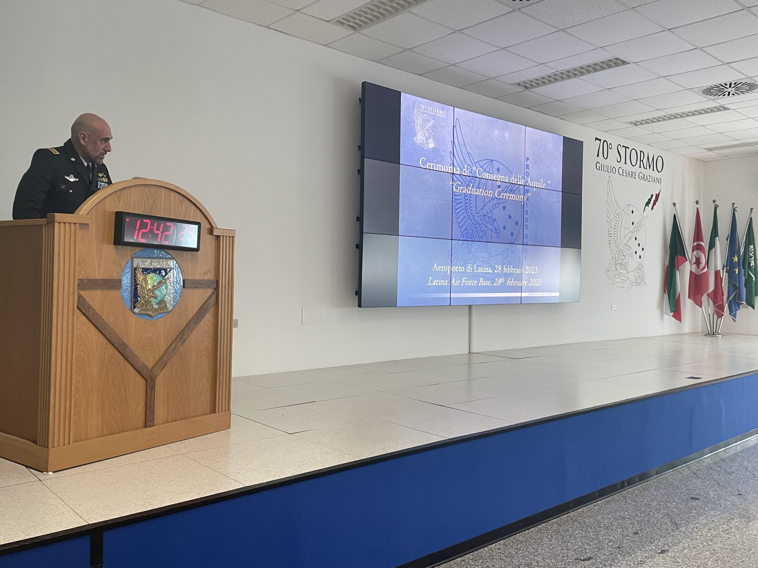 All’evento, presieduto dal Comandante del 70° Stormo, Colonnello Pilota Giuseppe BELLOMO, hanno partecipato il Vice Questore Vicario di Latina, Primo Dirigente Marchese Gregorio e la Dirigente dei corsi di volo della Polizia di Stato, Primo Dirigente Dott.ssa Cangelosi Valeria, unitamente ai rappresentanti dell’ambasciata Kuwaitiana in Italia, l’Addetto Militare Aggiunto, Generale Nawaf Alothman e il Kuwait Air Force SNR, Colonnello Khajah Ahmed.