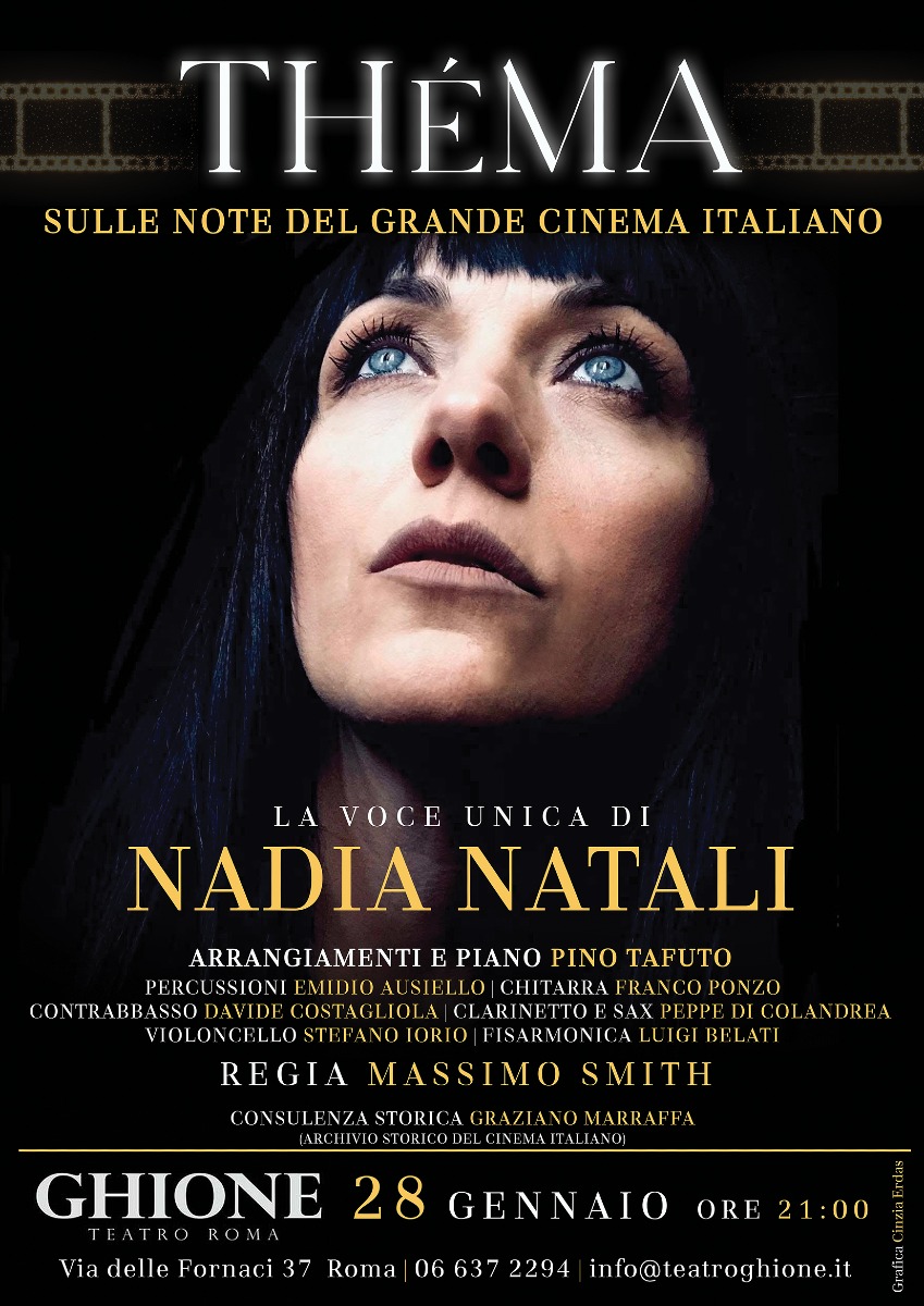 Mercoledì 28 gennaio, alle 21.00, il sipario del Teatro Ghione di Roma si apre su “Thema-Sulle note del grande cinema italiano”. In scena Nadia Natali.