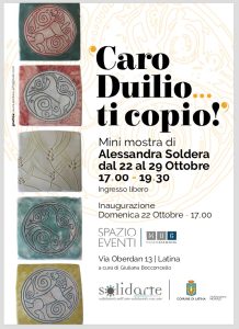 “Caro Duilio...ti copio!”: sarà inaugurata questa domenica 22 ottobre alle 17, al MUG, Museo Giannini -Via Oberdan, 13, Latina - la personale di Alessandra Soldera, nella quale vengono riprodotti con...