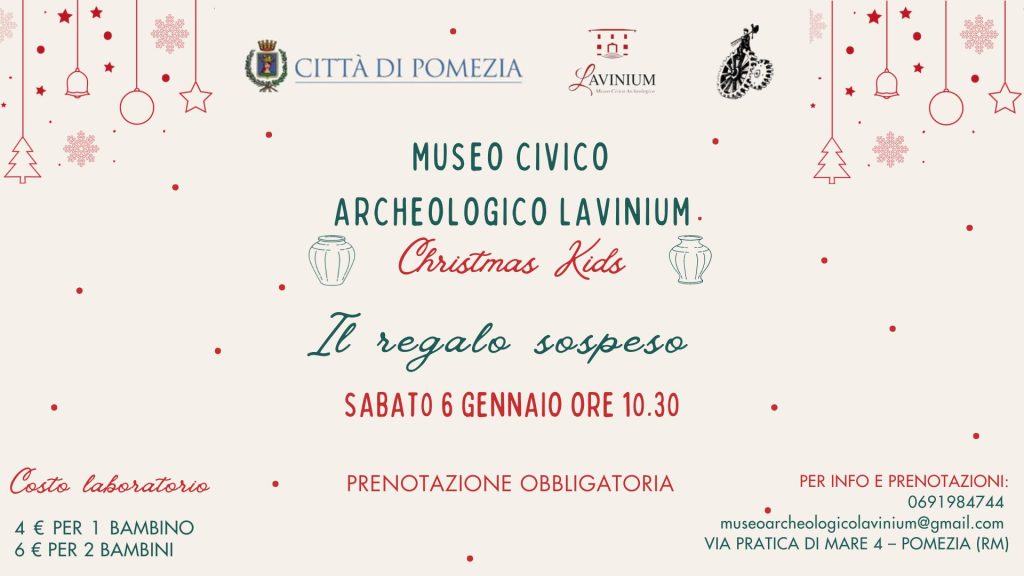 Al Museo Lavinium di Pomezia questo fine settimana un laboratorio didattico ed una visita guidata tematica dal titolo “Il Valore del Dono”. Il laboratorio “Il regalo sospeso!” è in programma per sabato 6 Gennaio alle 10.30.