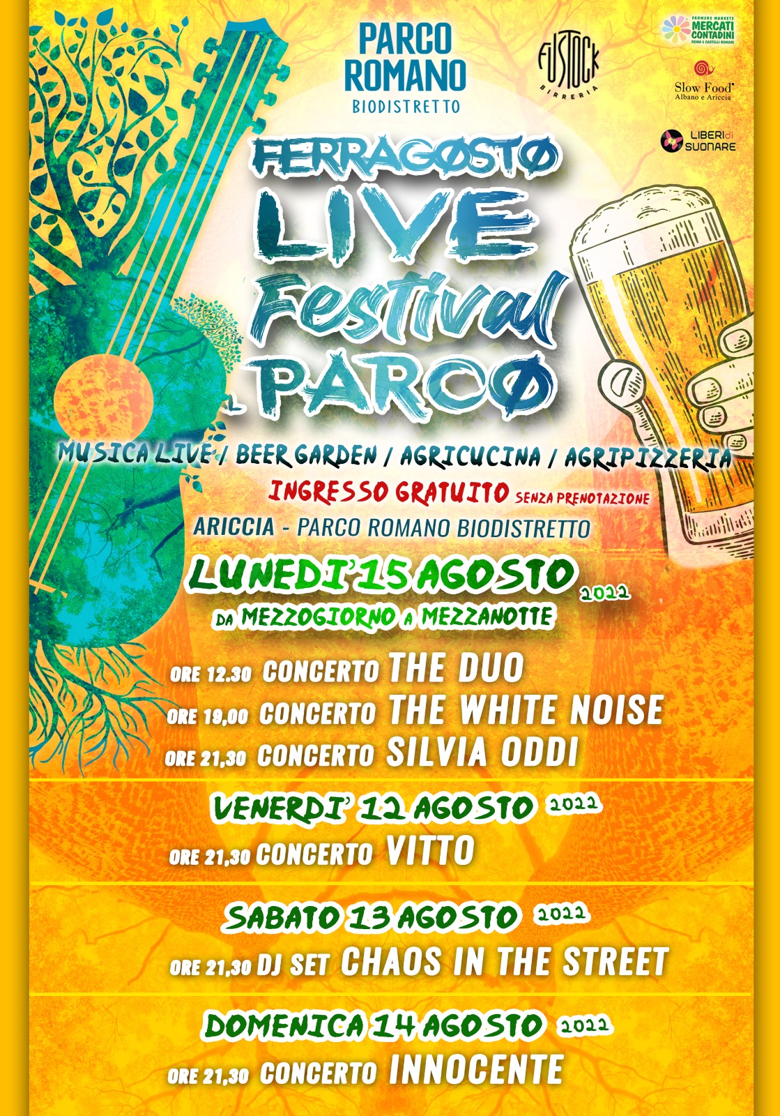 Al Parco Romano Biodistretto di Ariccia dal 12 al 15 Agosto il festival “Ferragosto LIVE”. -