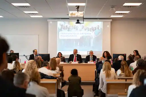 Il trapianto di arteria polmonare, autorizzato dal centro nazionale trapianti, è stato illustrato questa mattina dal Prof. Erino A. Rendina e dalla dott.ssa Cecilia Menna, chirurgo toracico presso la AOU Sant’Andrea, che hanno spiegato nel dettaglio quanto avvenuto, alla presenza della Magnifica Rettrice della Sapienza, Antonella Polimeni, del Presidente della Regione Lazio, Francesco Rocca, del Capo di Gabinetto del Ministro della Salute, Marco Mattei e del Direttore Generale dell’Azienda ospedaliero-universitaria Sant'Andrea, Francesca Milito.