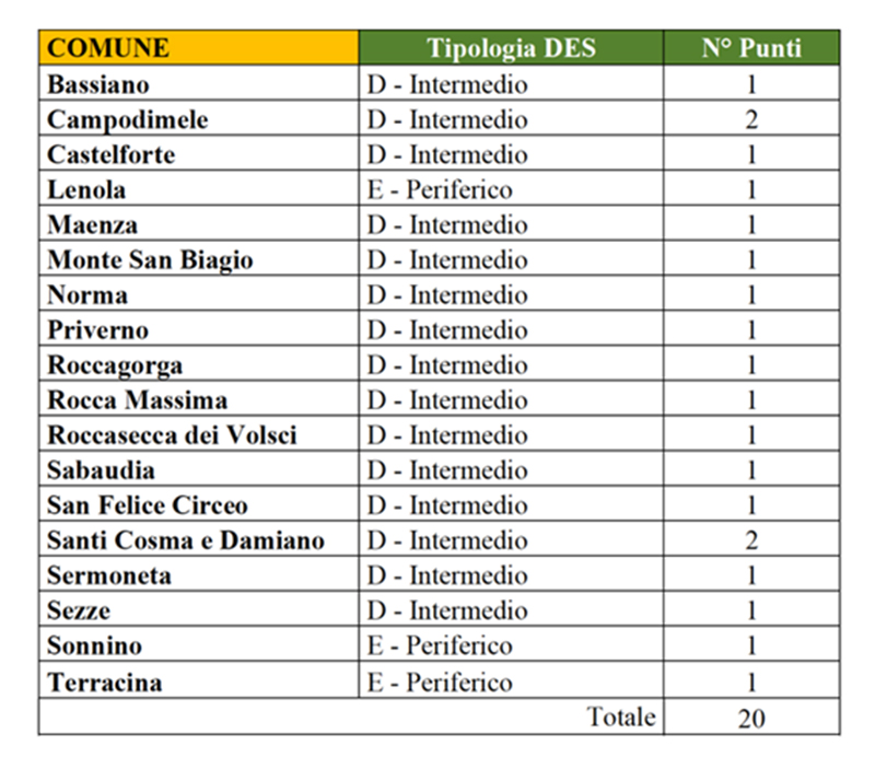 Obiettivi raggiungibili con la realizzazione di rete di ricarica per e-bike, monitoraggio e sicurezza a supporto dello sport, l’installazione punti di ricarica in aree periferiche per e-bike, device, defibrillatori DEA comprensivo di sistemi di monitoraggio in tempo reale dell’efficienza dei dispositivi salvavita, dell’utilizzo postazione di ricarica e telecamera di sicurezza e la realizzazione di un portale unico di conoscenza e divulgazione dello sport (trekking e mountain bike) e delle peculiarità dei territori periferici della Provincia di Latina.