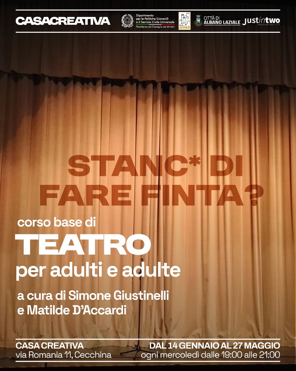 I corsi si svolgono ogni mercoledì, 19:00 – 21:00 (fino all’11 marzo) presso Casa Creativa, in Via Romania n. 11, Cecchina, e sono organizzati dall’associazione Justintwo ETS.