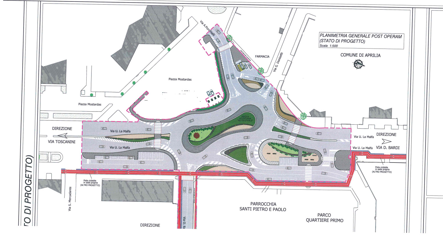 - Piazza Mostardas ed area a parcheggio adiacente l’ex Centro Commerciale “Il Tulipano”