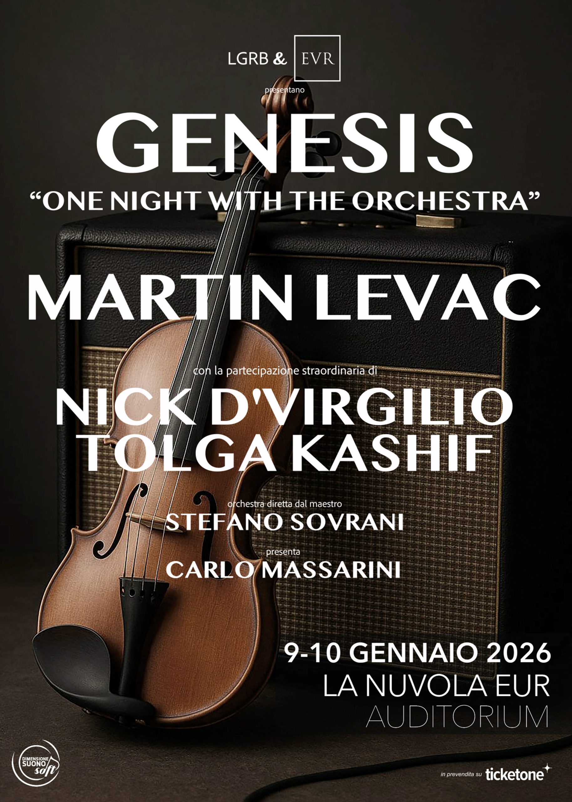 Il 9 e 10 gennaio 2026, Martin Levac, il più acclamato interprete mondiale dei Genesis, e Nick D’Virgilio, leggendario batterista della band, si uniranno a un'orchestra sinfonica di 70 elementi intrecciata a un potente ensemble rock