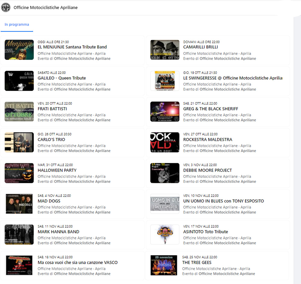 Per conoscere tutti gli eventi in programma, basta seguire la pagina Facebook ufficiale di Officine Motociclistiche Apriliane al seguente link: