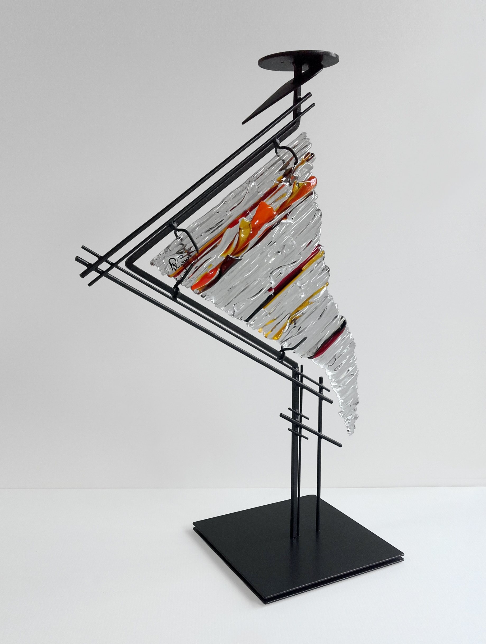 In esposizione una serie di sculture e installazioni realizzate in vetro e metalli, lavorate sfruttando la versatilitàdella tecnica Tiffanye quella delle vetrate a piombo. Una lavorazione particolare che presenta elementi tipici dell’Art Nouveau e dello Stile Liberty, unpunto di partenza per una narrazione resa moderna da una costante indagine del senso profondo della vita e dai molteplici rimandi culturali: Mostafa, nato e cresciuto a Teheran, ha compiuto gli studi in architettura a Firenze, da anni vive e lavora a Latina. È dunque, come afferma la curatrice, “Un uomo che racchiudein sé sguardi plurimi e che trova identità nell’incontro traculture diverse dove l’una perde definizione per fondersinell’altra, esattamente come avviene con i frammenti divetro”.