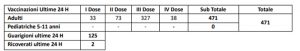 125 le guarigioni delle scorse ore; due i nuovi ricoveri.