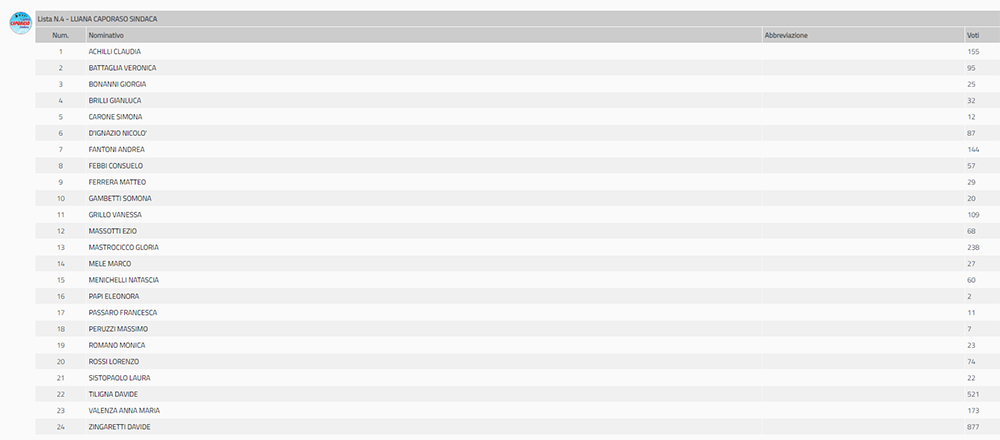 Il dato assume rilevanza se comparato con le preferenze ottenute, ad esempio, dal sindaco uscente Antonio Terra (che ne ha raccolte 602) o a consiglieri navigatissimi, come Roberto Boi (691), Vincenzo La Pegna (495), Bruno Di Marcantonio (394), Vincenzo Giovannini (309 voti) o Giovanni Raffa (355).