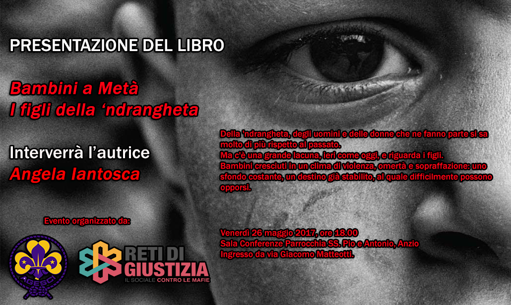 ANZIO - Oggi la presentazione del libro "Bambini a Metà - I figli della ‘ndrangheta" di Angela Iantosca.