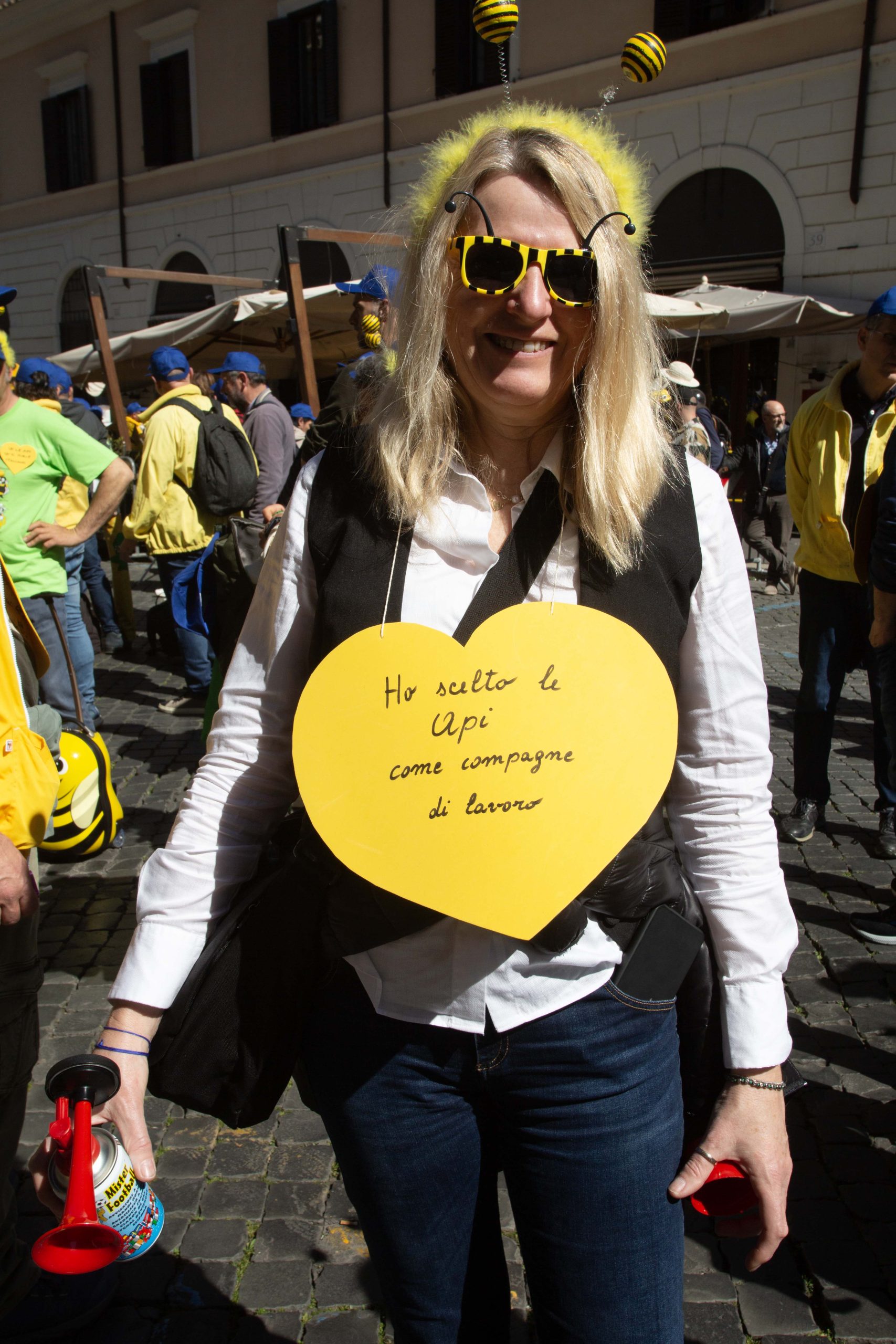 Mille tute gialle si sono strette intorno ai colori azzurri di Miele in Cooperativa, l'Associazione nazionale di apicoltura, in piazza Santi Apostoli, di Roma. Non per protestare. Non per manifestare...