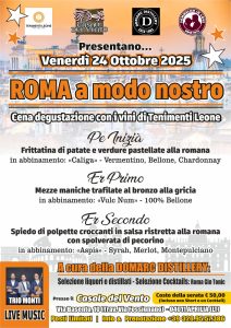 Aprilia - Al "Casal del Vento" questo venerdì sera l'evento "Roma a Modo nostro". Scopri il menù.