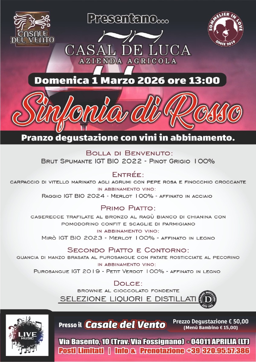 Segnate in agenda, l’appuntamento é per Domenica 1 Marzo, al Casale del Vento, quando andrà in scena "Sinfonia di Rosso".