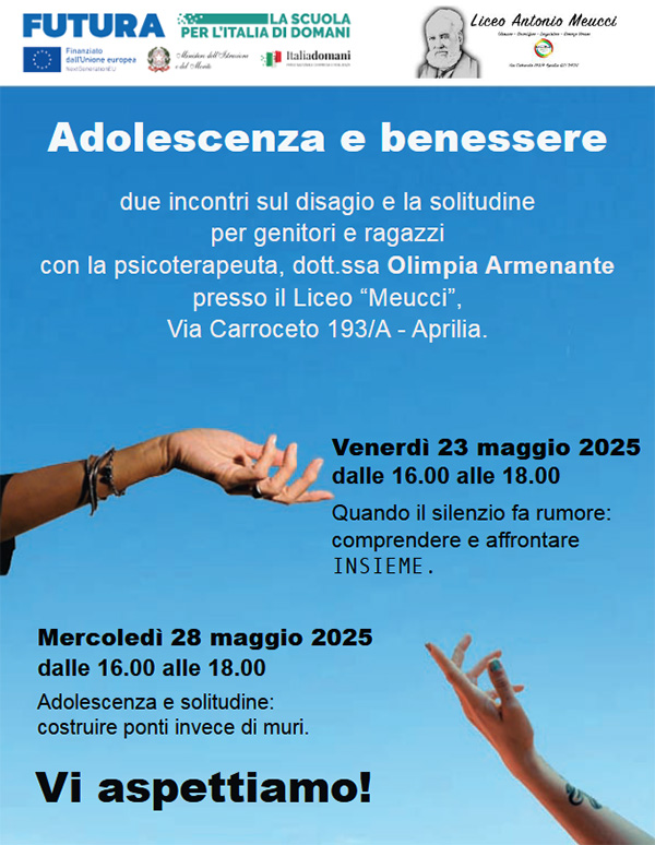 APRILIA - “Adolescenza e benessere: come affrontare il disagio e la solitudine”. Al liceo “Meucci” due incontri con una psicoterapeuta.