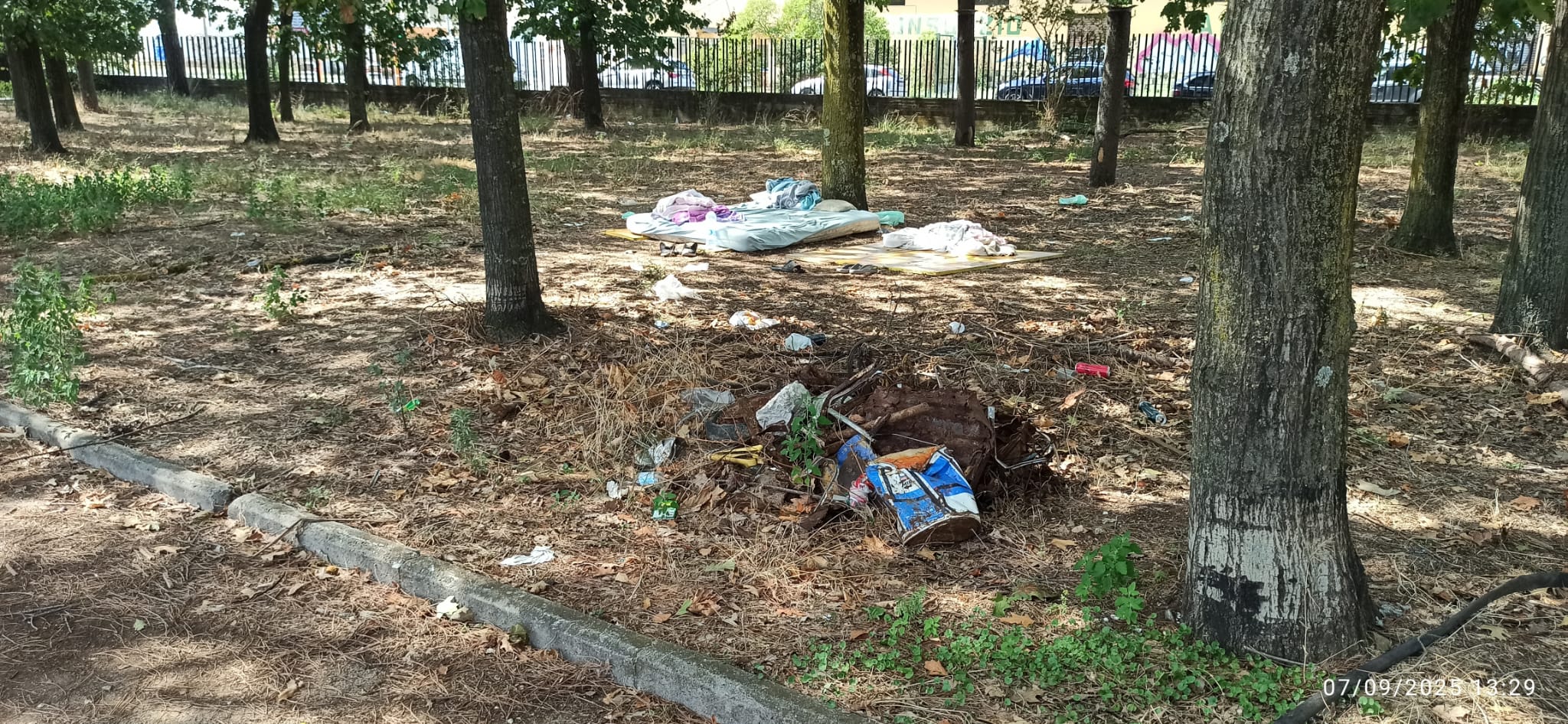 L’area, chiusa dal lato di via Matteotti, ma recintata in modo approssimativo all’interno, risulta frequentata da senzatetto che vi hanno persino creato dei giacigli di fortuna.