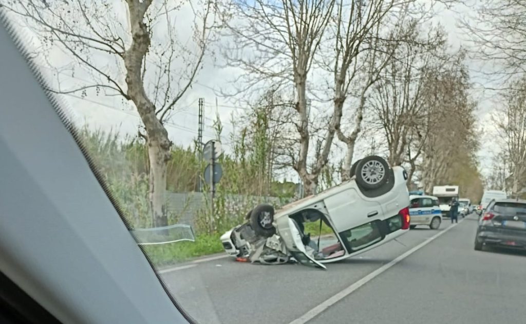 Aprilia - Auto si ribalta sulla via Nettunense