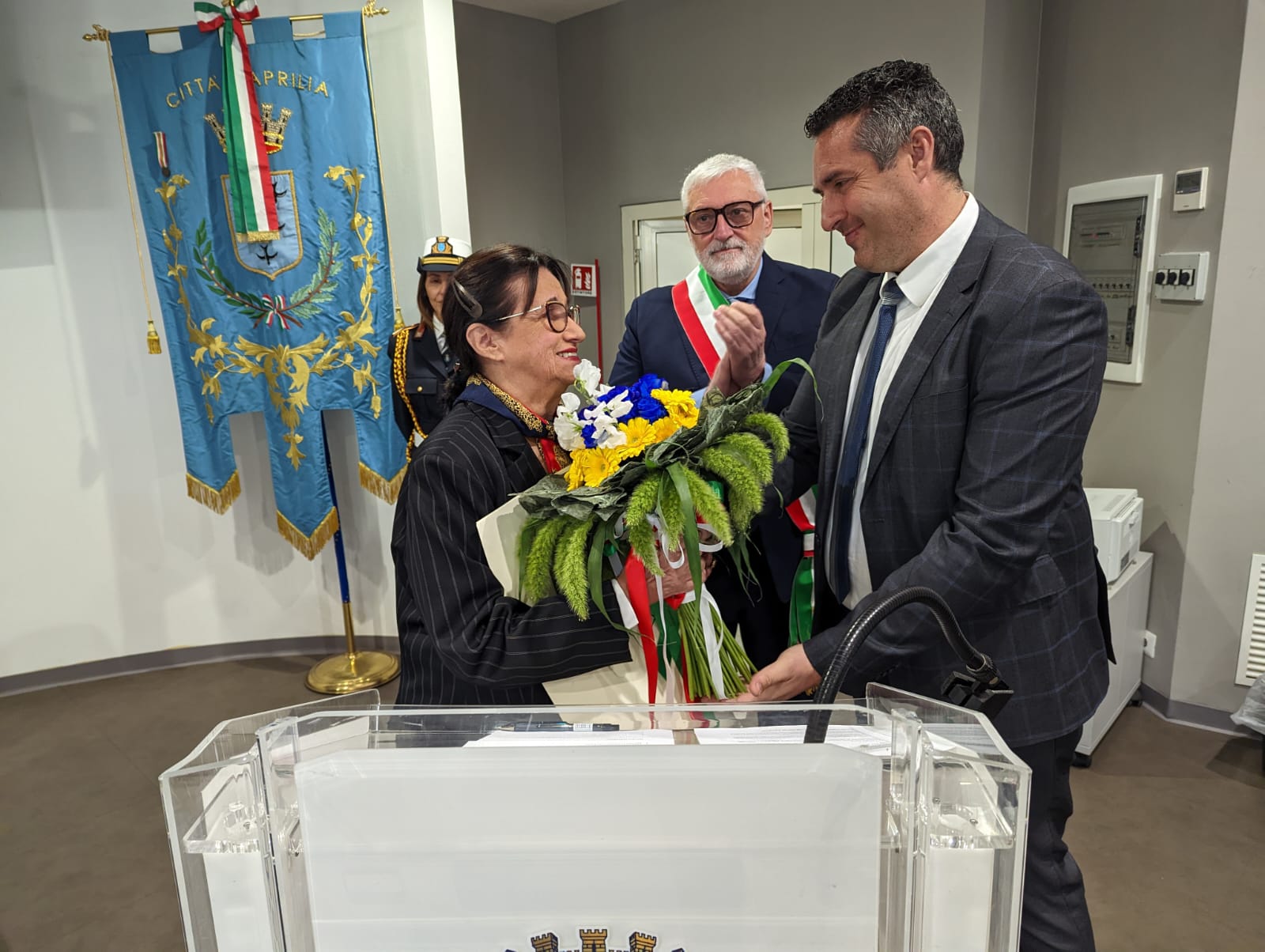 Ieri mattina il sindaco di Aprilia Lanfranco Principi ha consegnato alla professoressa Elma Sant’Ana l’attestato che ratifica la volontà espressa dal consiglio comunale con delibera votata all’unanimità.