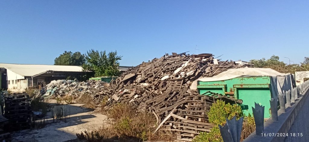 L’azienda in questione è la Eco Imballaggi situata in via delle Scienze, ovviamente ad Aprilia. Già osservandola esternamente è possibile vedere la grande mole di rifiuti ammassati per ogni dove, comprese le aree non pavimentate, che, come una bomba ad orologeria, in caso d'incendio, potrebbero arrecare danni importanti vista la presenza, nelle vicinanze, di una conduttura del gas.