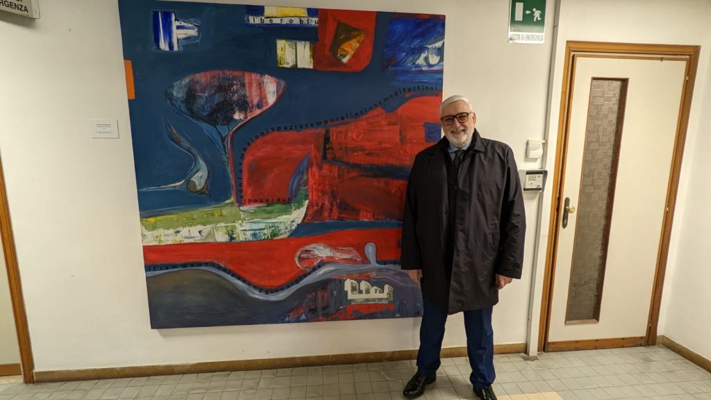 Aprilia - "Frammenti conformanti", il dipinto di Aleardo Nardinocchi affisso nel Comune di piazza Roma