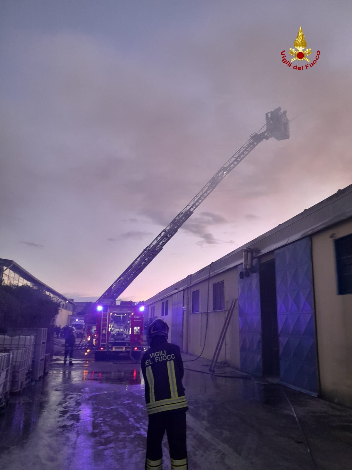 L'incendio si è sviluppato all'interno di un capannone in cap di circa 2.500 mq con solaio di copertura in lastre di predalles e ha comportato la combustione di vari materiali, tra i quali cartoni cassette in plastica plastica, oli vegetali e materiale dolciario.