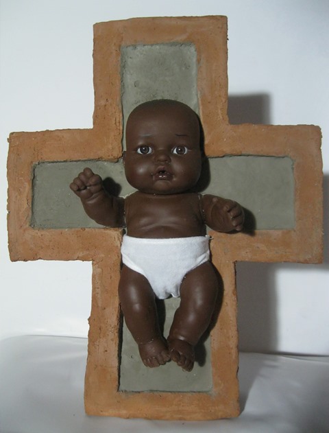 La scultura vuole raffigurare il bambino di colore nero, che dopo un angoscioso esodo, viene appoggiato in una mangiatoia a forma di Croce (simbolo della passione di Gesù Cristo) con le braccia e le mani che avanzano contente verso di noi. Questo gesto vuole ricordare l’attenzione verso i diritti dell’infanzia. L’opera di Guadagnuolo è diventata simbolo umanitario e ci fa intendere nel profondo le sciagure che accadono nel mondo per tutte le atrocità subite dai bambini in guerre e conflitti. Guadagnuolo, come artista umanitario Ambasciatore di Pace dell'Universal Peace Federation – ONG accreditata con “Special Consultative Status” presso il Consiglio Economico e Sociale (ECOSOC) delle Nazioni Unite - rievoca il rispetto dei diritti umani e dell’infanzia contro ogni forma di ingiustizia, proponendo principi per una confronto sull’Umanesimo contemporaneo per la protezione della vita.