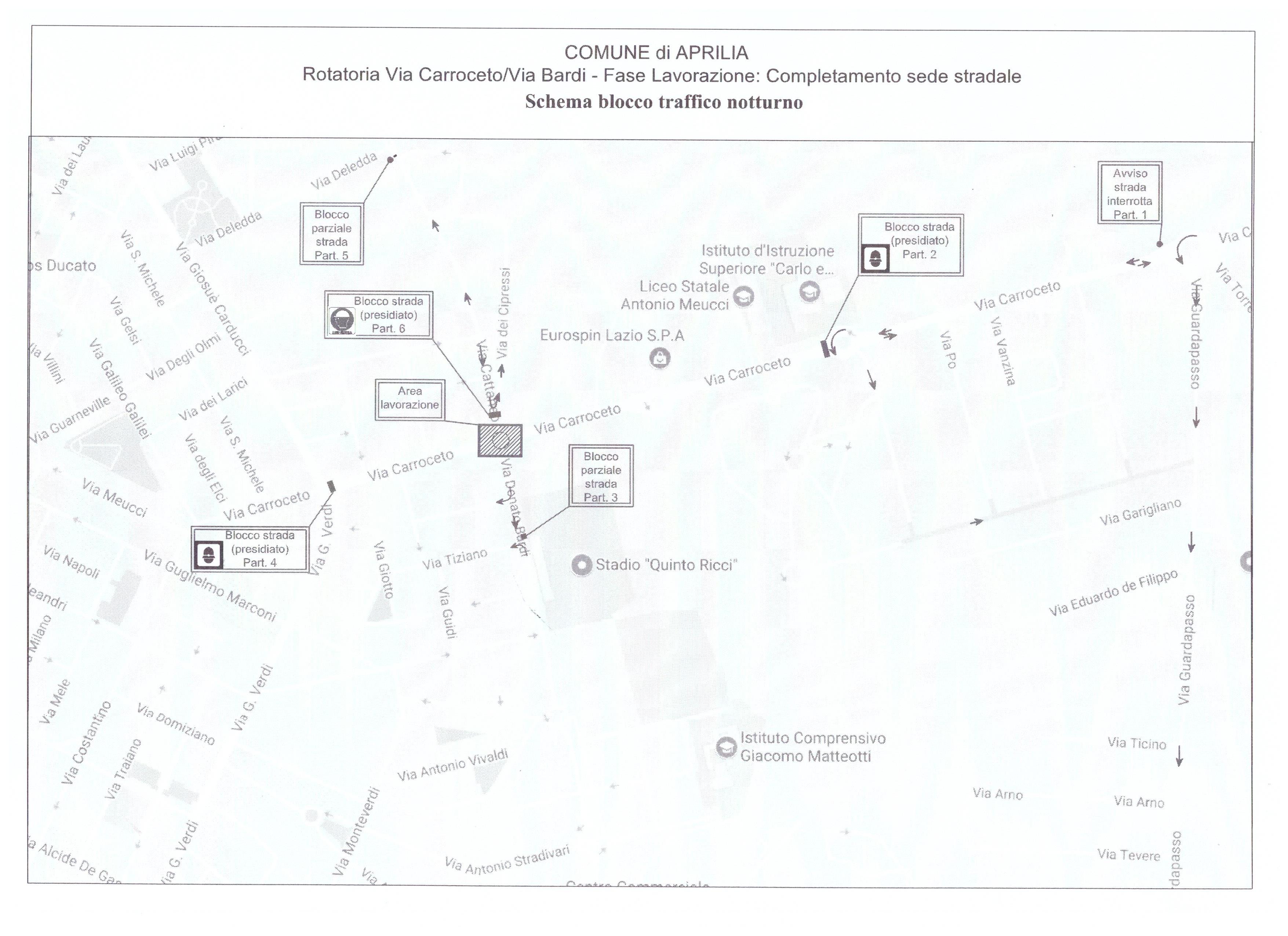 Aprilia - Lavori notturni alla rotatoria: via Carroceto chiusa al traffico l'8 e 9 agosto.