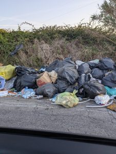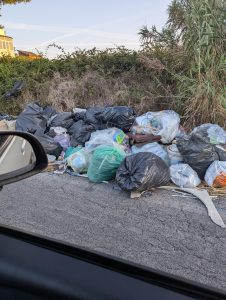 Ad Aprilia su via Pontina Vecchia tra la rotatoria di Casa Lazzara, andando verso l’incrocio con via Strampelli la situazione sta diventando invivibile per i residenti. A questo si aggiunga che via Pontina Vecchia di notte è al buio e quindi pericolosissima tra cinghiali e cani in cerca di cibo. Negli ultimi giorni, inoltre, stanno buttando sacchi con cavi sguainati dal rame, probabilmente scarti di furti.